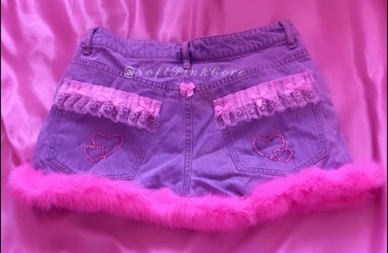🩷Denim fabric customized with cute lace with bows!!